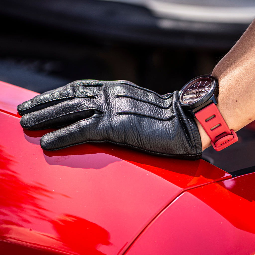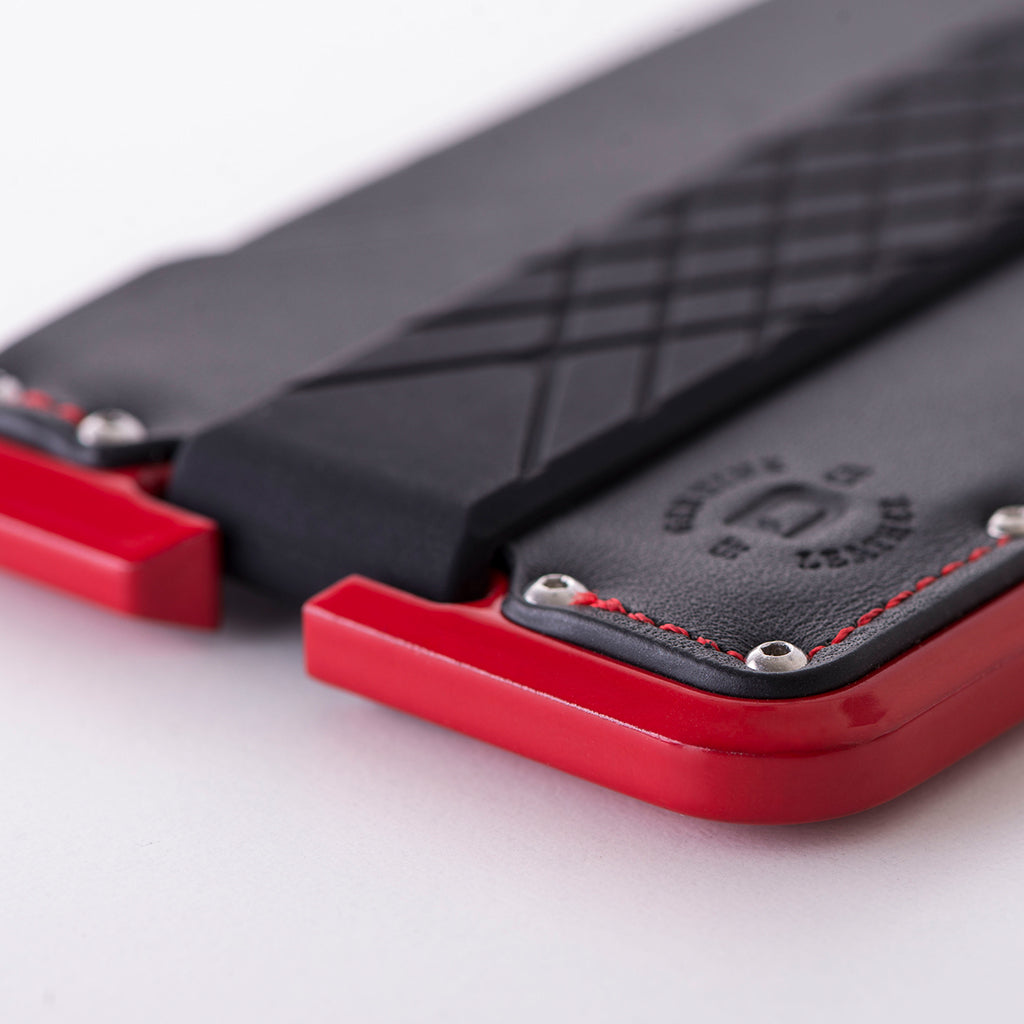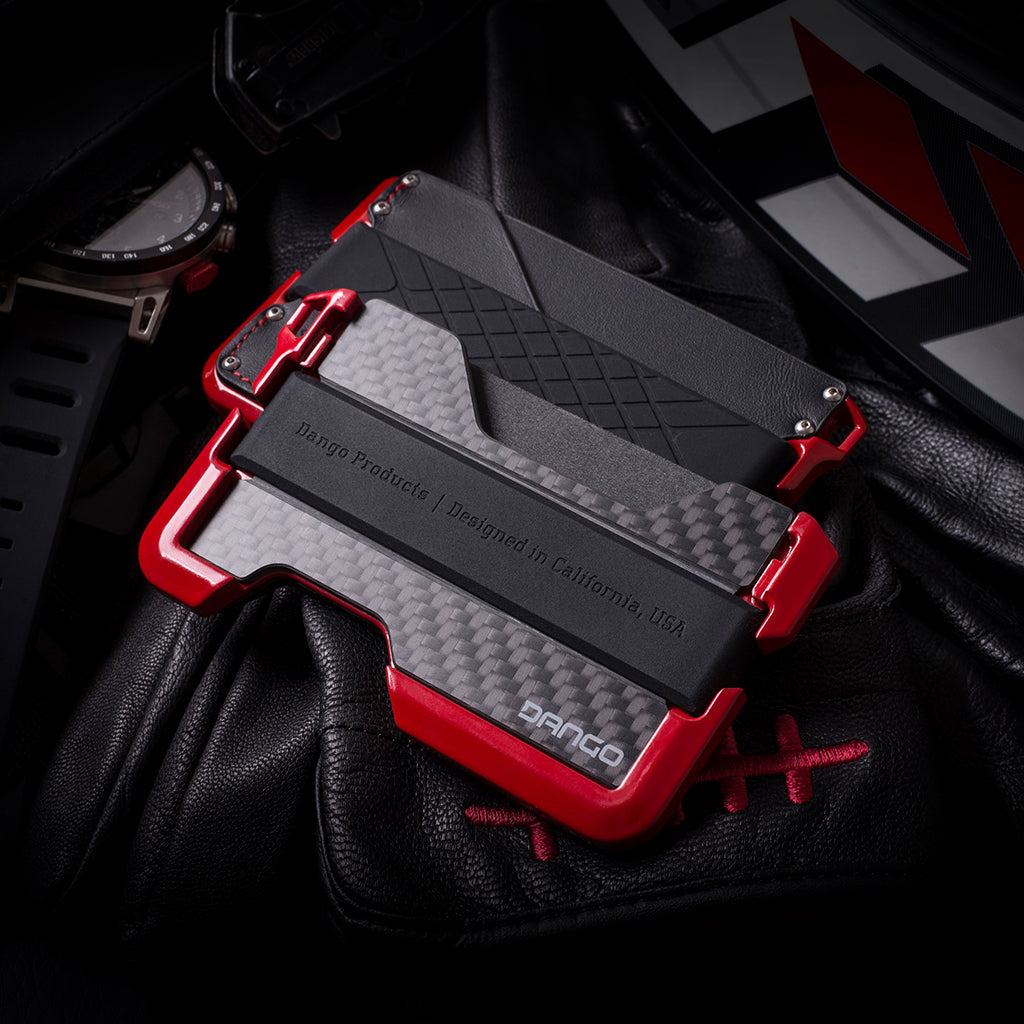 For those who love to burn rubber, are driven by the smell of fuel and are addicted to speed, this is the bundle for you! Inspired by performance motor sports and the automotive industry, the R-Spec wallet and watch bundle is the official dynamic duo! Machined out of 6061 aerospace aluminum, the glossy red powder coated D01 Dapper Wallet uses a genuine carbon fiber backplate, top grain leather pocket and an elastic silicone band to hold up to 12 cards and cash.