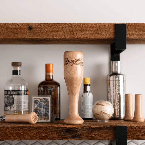 The Atlanta Braves Wined Up® - a mini baseball bat wine glass. This 100% birch wood mini baseball bat is perfect to sip from on the patio, sitting poolside, while watching the "big game", or even tailgating.