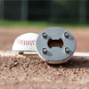 We take a real leather baseball, cut it in half and hollow out a portion of the core. In this hallowed space, we use stainless steel fasteners to install a magnetic bottle opener.