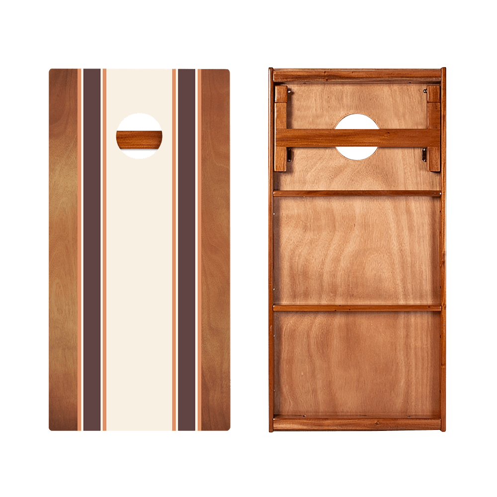 For players who want top-tier performance without the full Gold Series price tag. This high-quality ACA Classic Stripes Mahogany Brown and Orange Silver Series Cornhole Board delivers where it matters most. Packed with many premium features—like a durable mahogany frame and a 5/8-inch Grade A plywood top—it offers a solid, reliable playing surface. Double cross bracing enhances stability, while locking collapsible legs and rubber grip feet ensure a steady game on any surface. This board isn’t just built to play, it’s built to impress. Bring a striking pop of color to your game with the Classic Stripes Mahogany Brown and Orange design, combining dynamic brown and orange stripes with the warmth of mahogany for a stylish look.