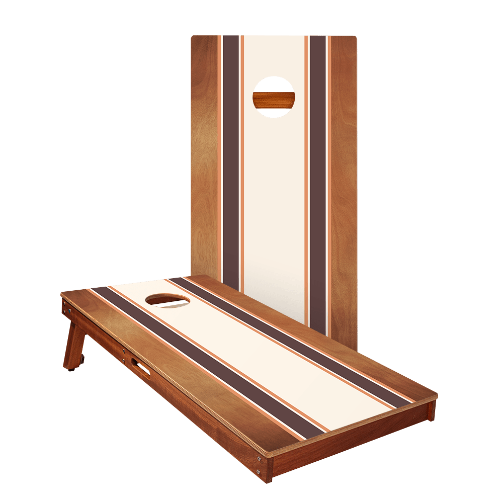 Classic Stripes Mahogany Brown and Orange Silver Series Cornhole Boards with Double Brace – 2x4 Regulation Size
