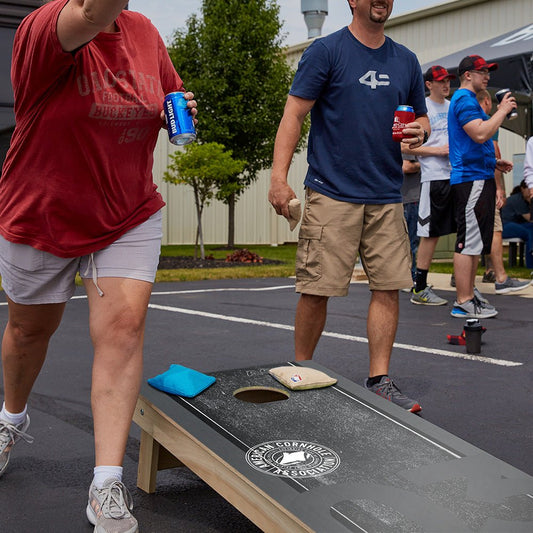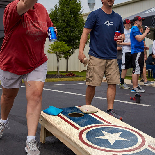 Classic Stripes Mahogany Blue and Red Silver Series Cornhole Boards