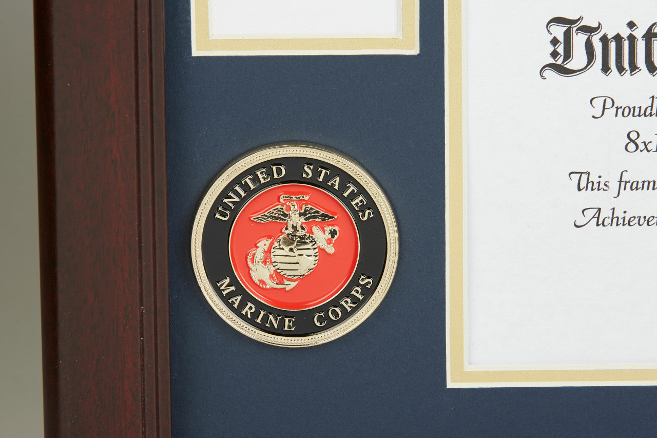 The U.S. Marine Corps Medallion 8-Inch by 10-Inch Certificate and Medal Frame is perfect for proudly displaying the certificate and award of an individual who is serving, or has served in the U.S. Marine Corps.