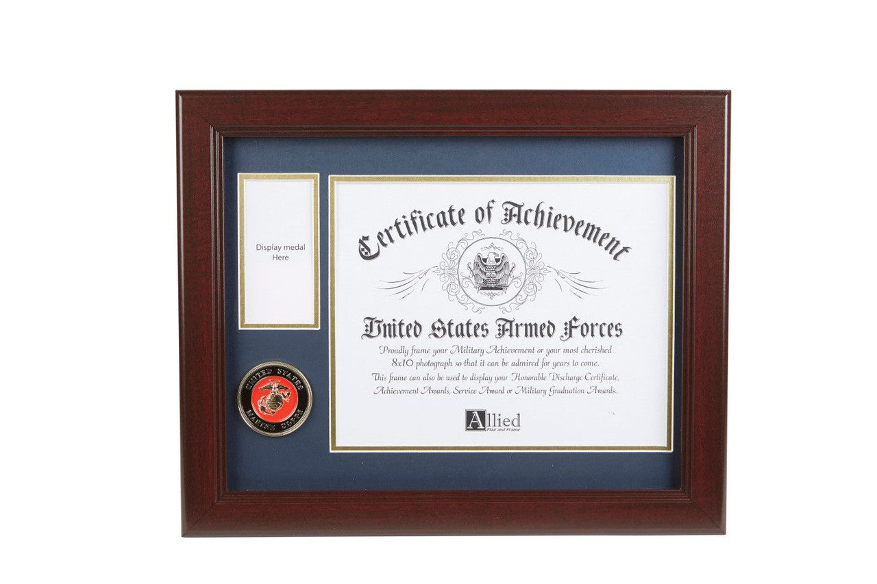U.S. Marine Corps Medallion Certificate and Medal Frame is designed to hold a single 8-Inch by 10-Inch document, certificate, award, diploma or picture.