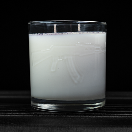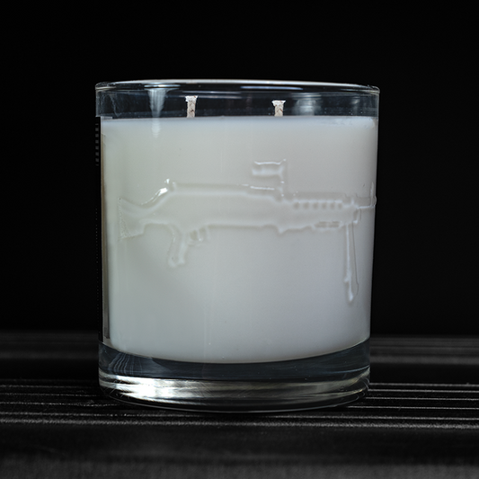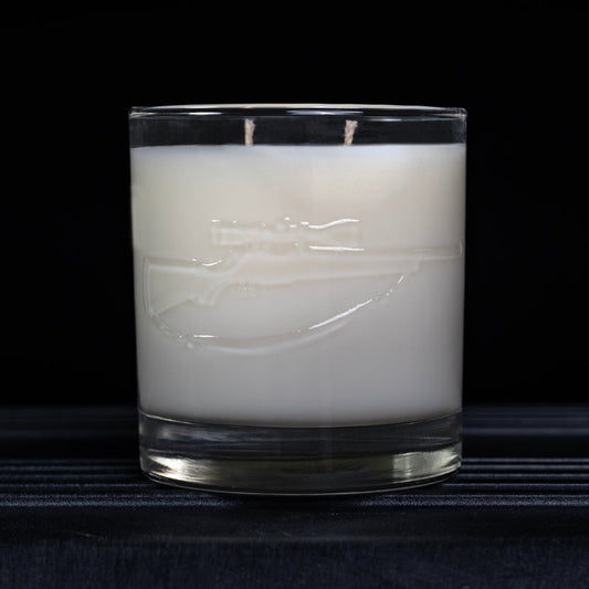 HUNTING CAMP CANDLE (EMBOSSED SCOPED RIFLE)