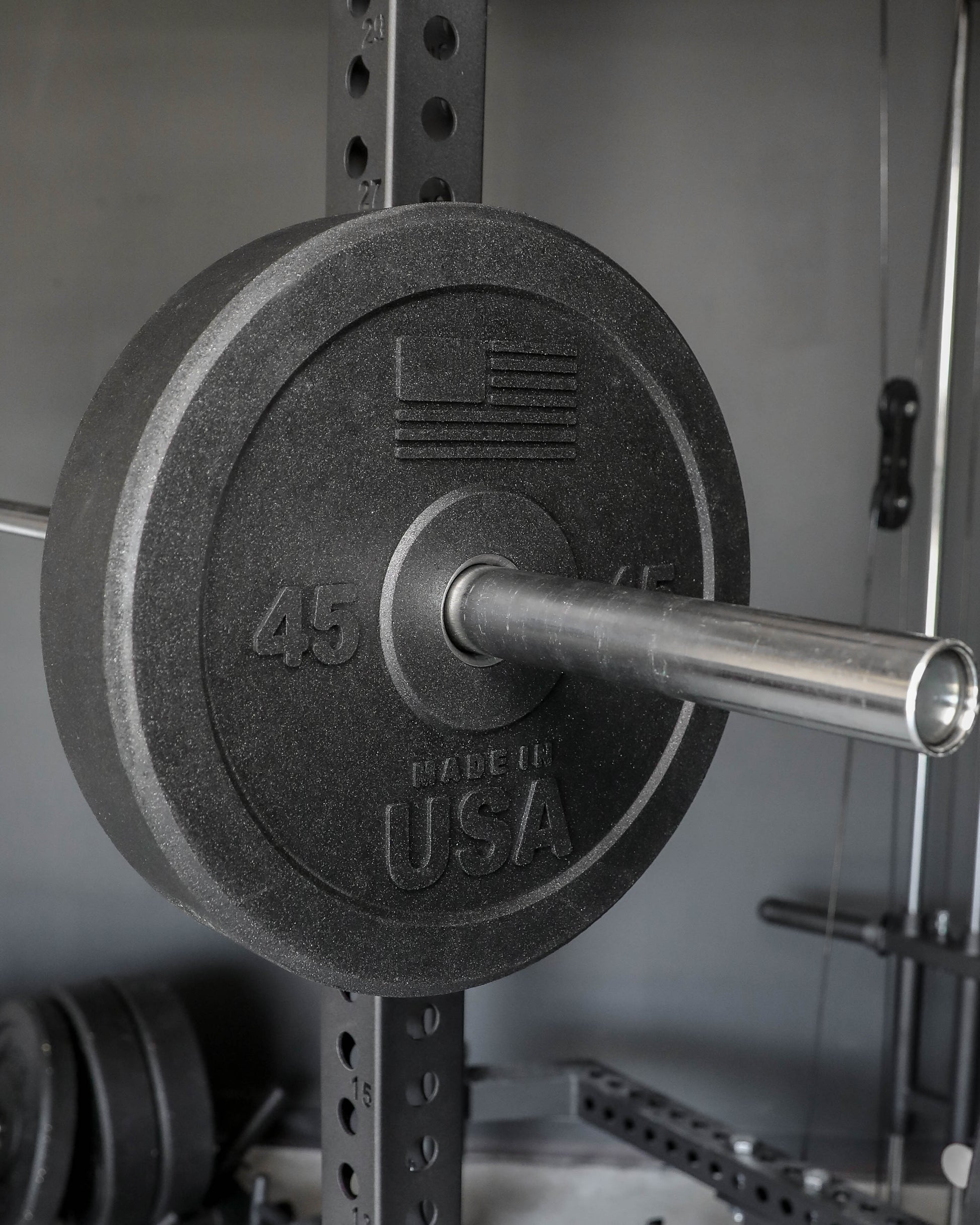 High-quality, durable and affordable weight lifting bumper plates manufactured in the USA. Each plate is composed of recycled crumb rubber and a premier urethane binder, making them ideal for both indoor and outdoor conditioning. The bumper plates feature a matte black finish with recessed stainless steel inserts, creating durable, long-lasting equipment perfect for garage gyms.
