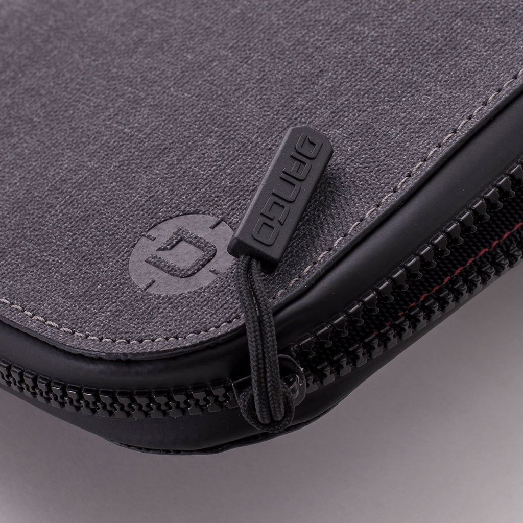 Made of water resistant DTEX material with reinforced splash resistant zipper & zipper pull. The interior is made of durable nylon weaving to keep your belongings protected and snug.