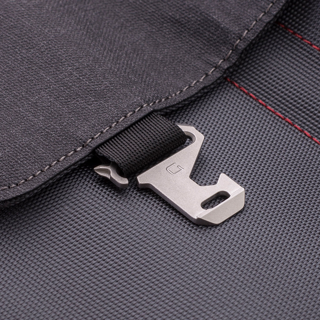 The CA01 comes with the MT01 Clasp Multi-Tool designed to be unobtrusive yet highly functional. The MT01 includes a bottle opener, 1/4" hex tool, a chisel edge, key hole, flat head & phillips screwdriver and a secure strap which allows you to feed through a flat strap for extra handling.