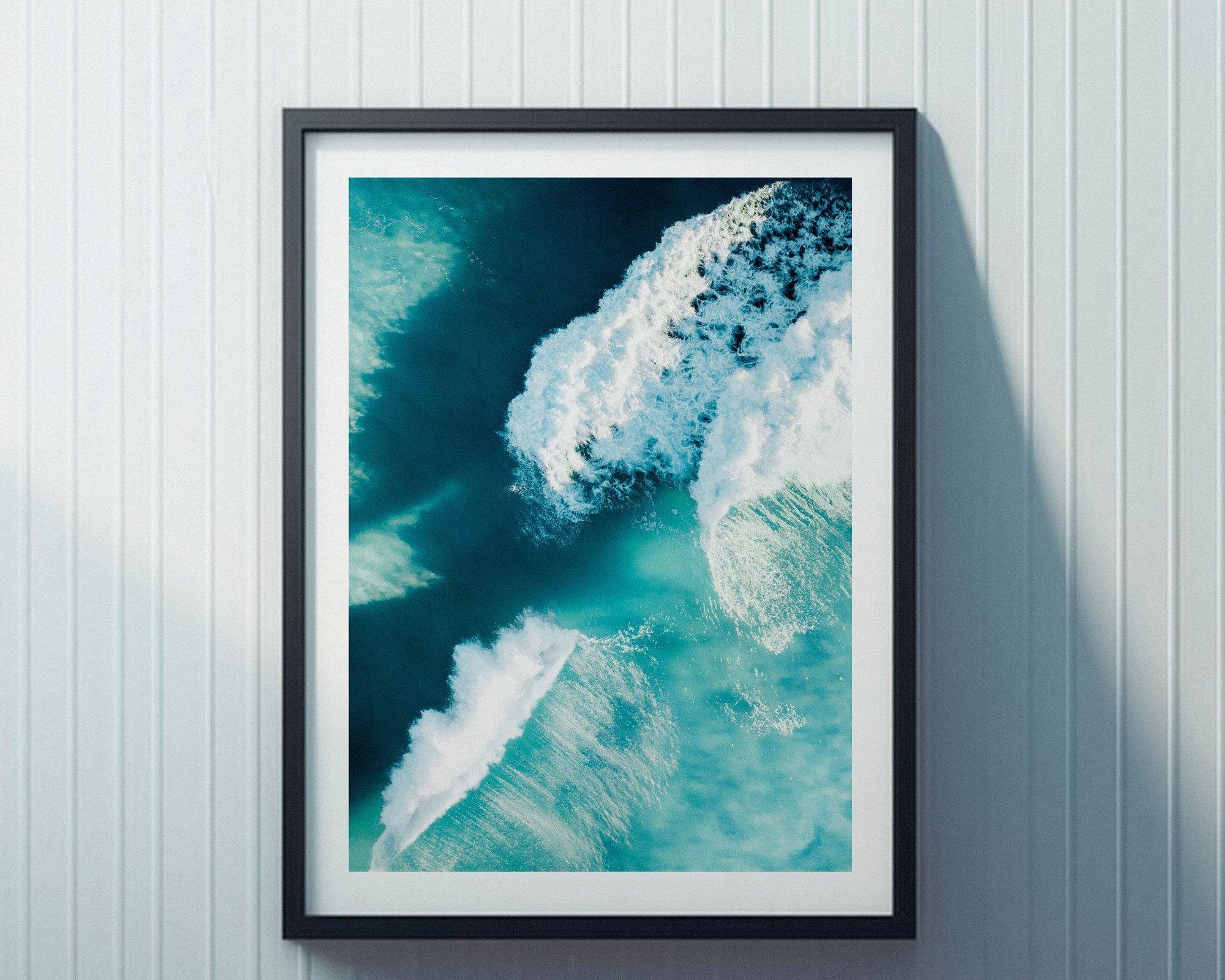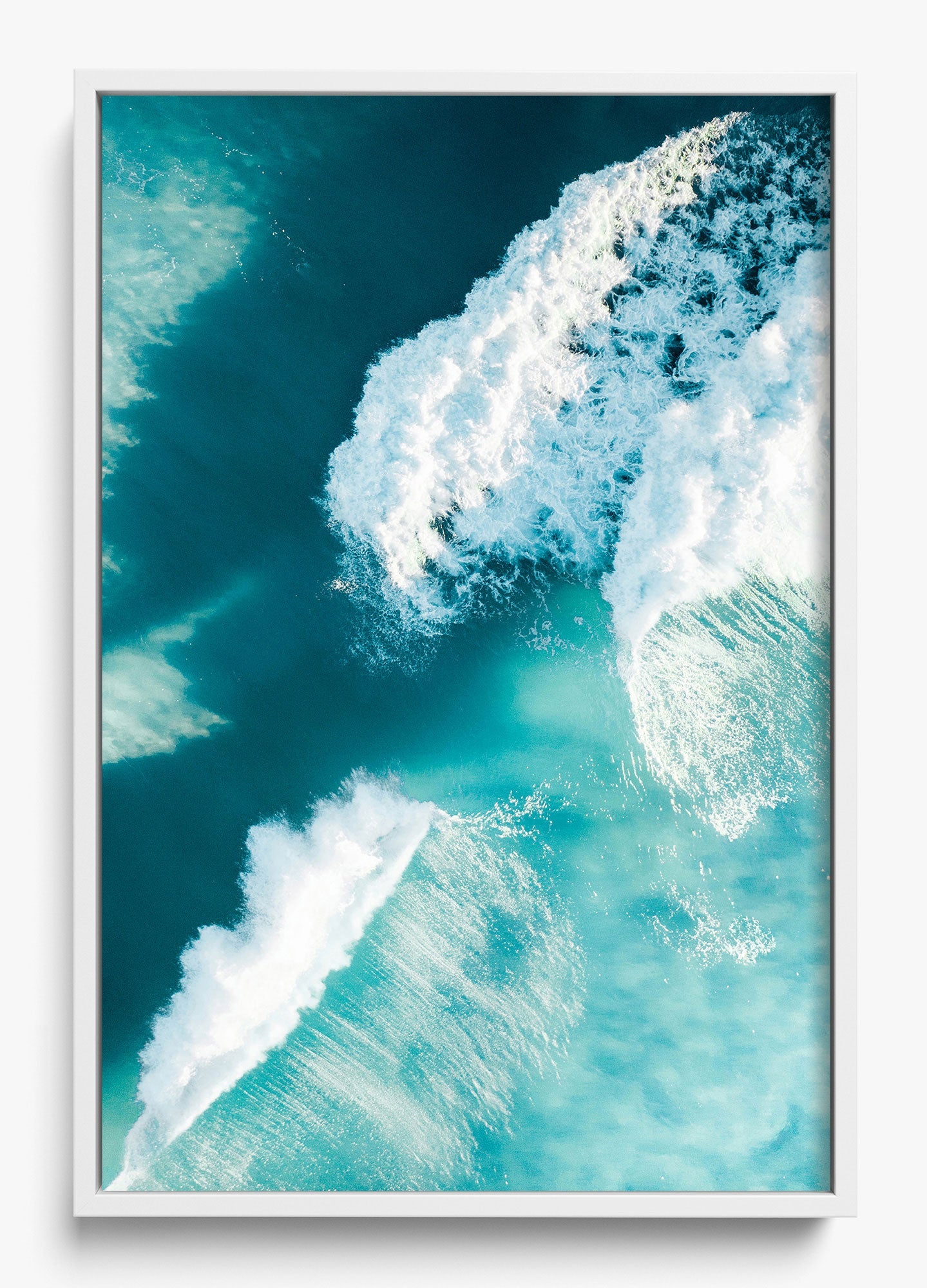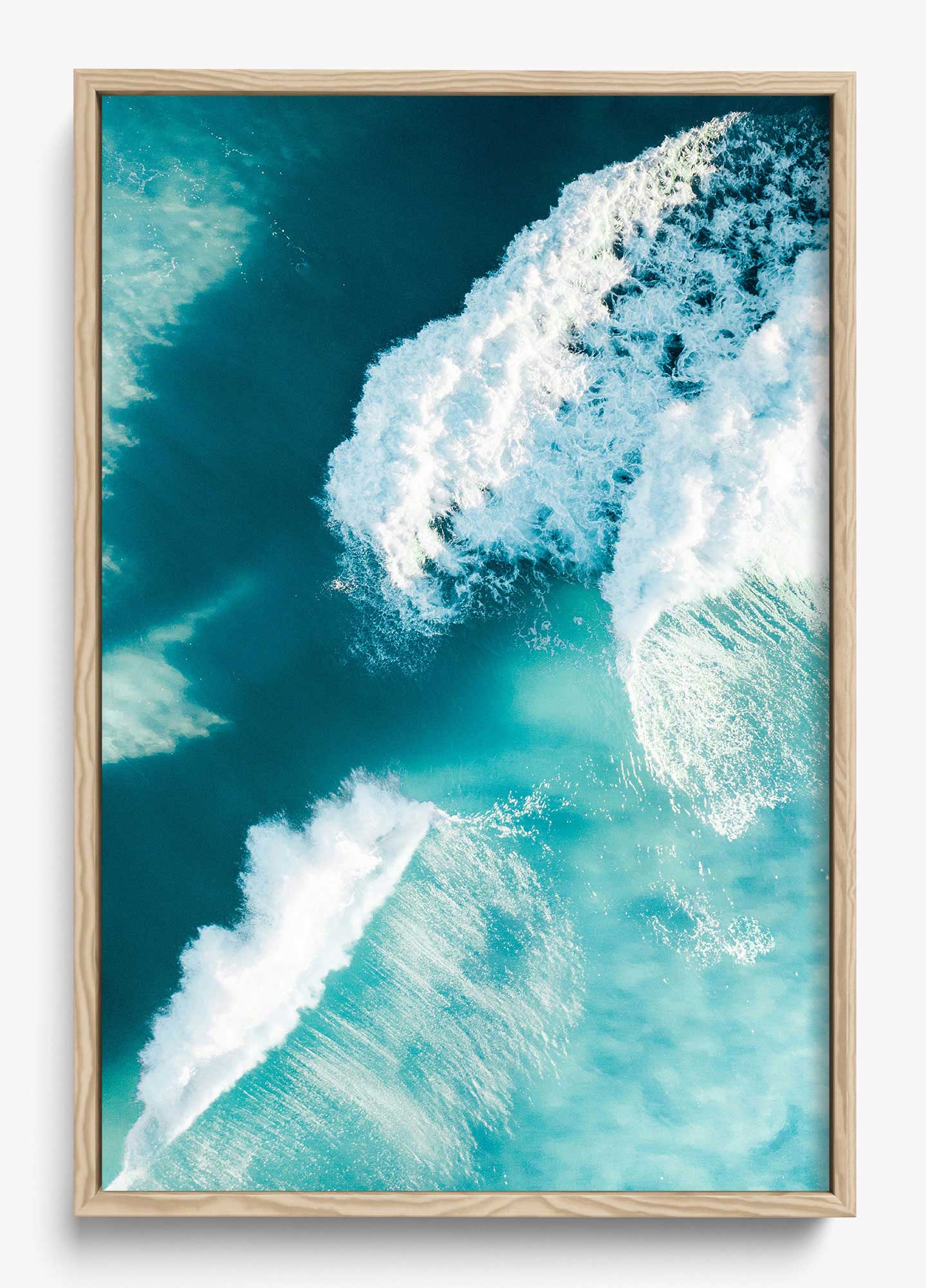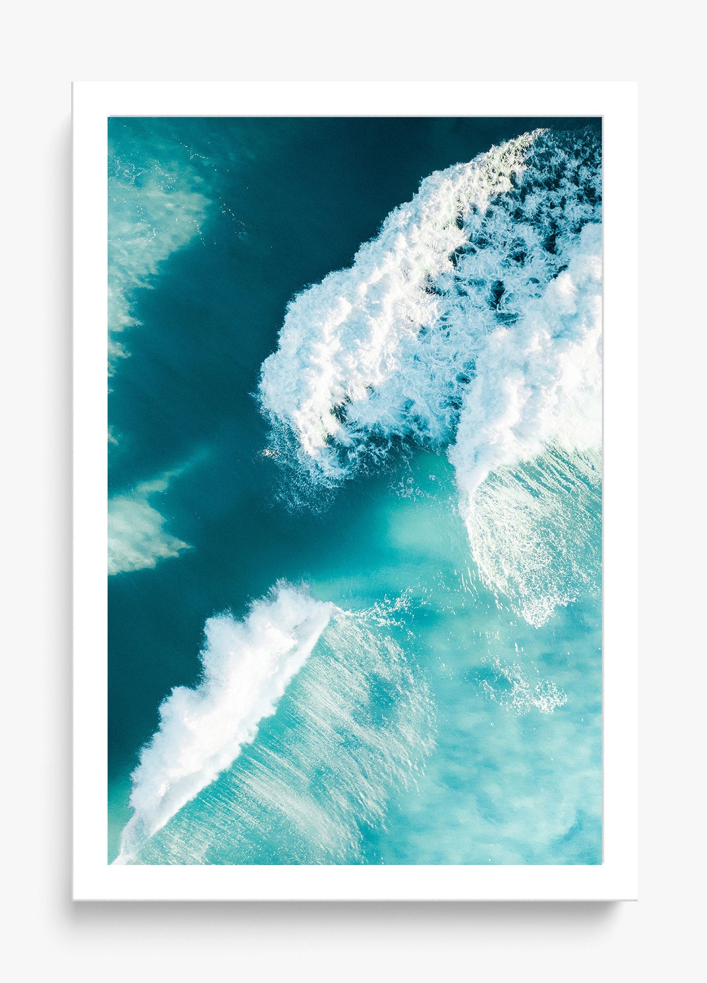 Turquoise swells fold into one another along the Australian coastline, revealing the steady rhythm of the open sea. Viewed from above, this piece feels fluid and meditative - an abstract study of movement, energy, and calm in perfect balance.