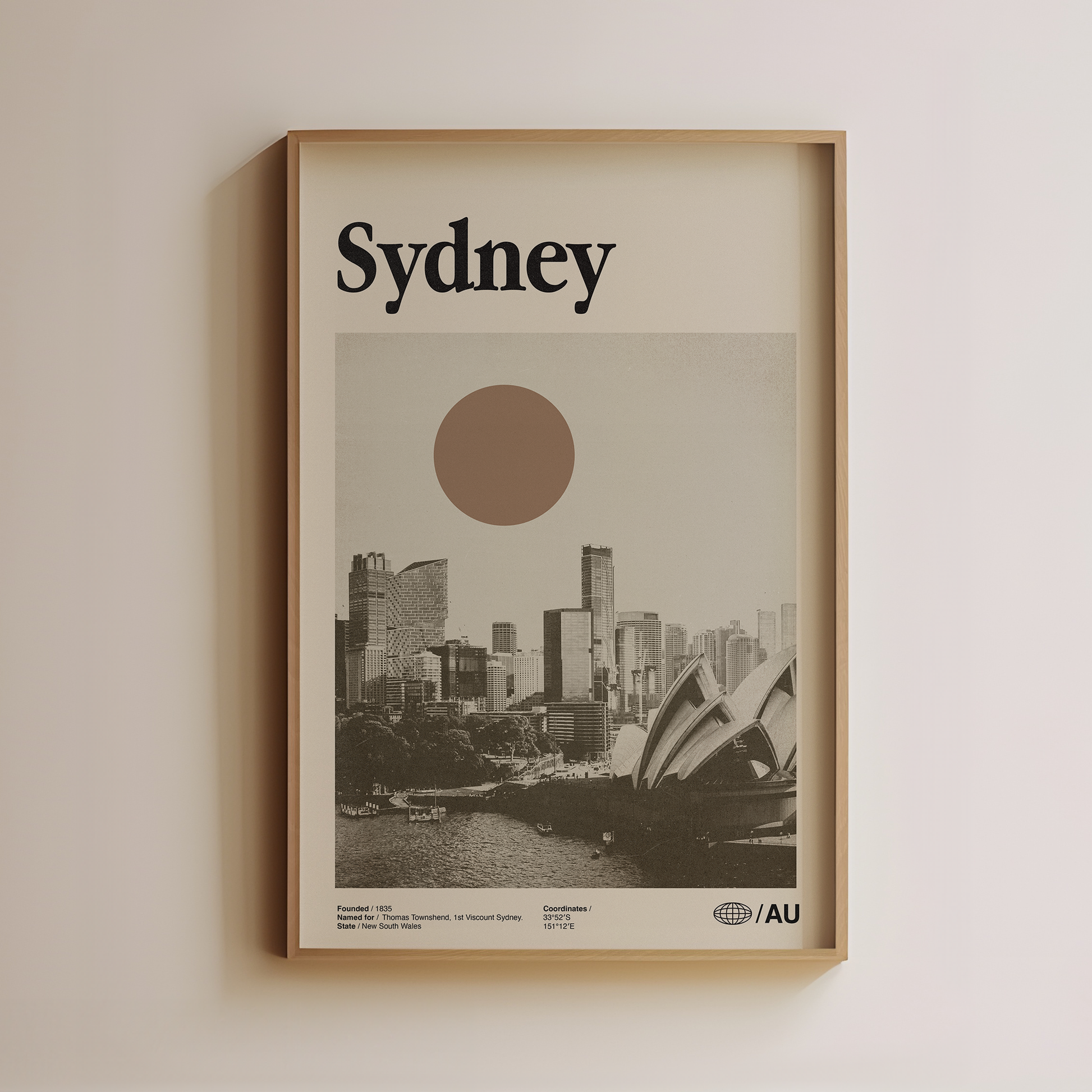 Sydney poster Australia art, Midcentury Modern Wall Art.
