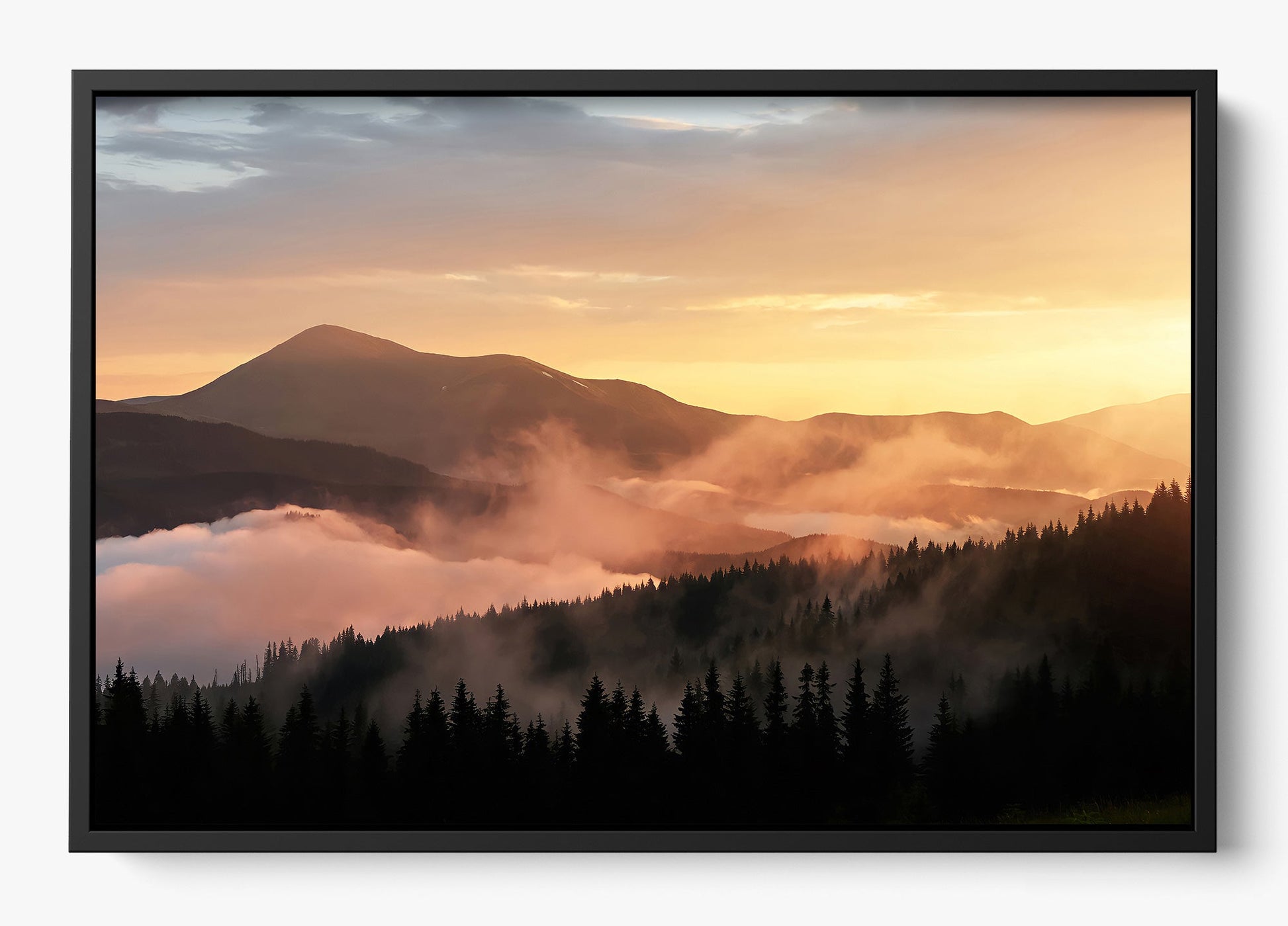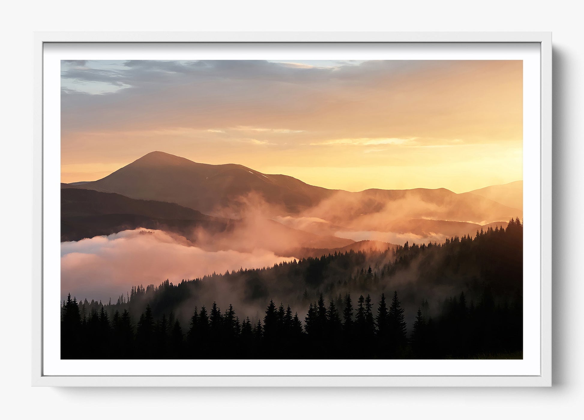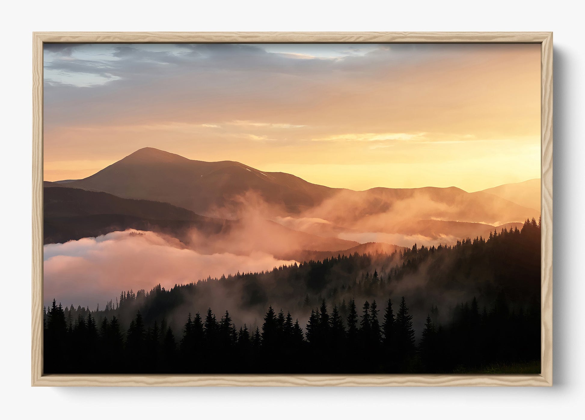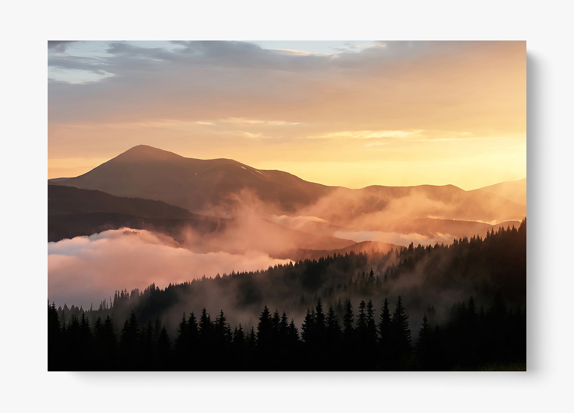 Fog drifts across the ridgelines of the Great Smoky Mountains, softening the landscape into layered tones of light and shadow.