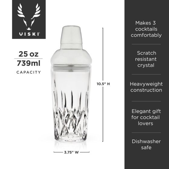 This vintage-inspired cobbler cocktail shaker is perfect for anyone who loves classic decor. The elegant lead-free cut crystal tumbler illuminates the cocktail inside, while the built-in stainless steel strainer includes a silicone seal.