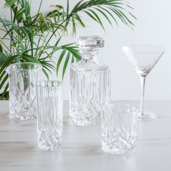 Sip a refreshing cocktail from this iconic highball glass. With a tall silhouette, heavy base, and cut-crystal details, this crystal tumbler set brings elegance to any gin & tonic.