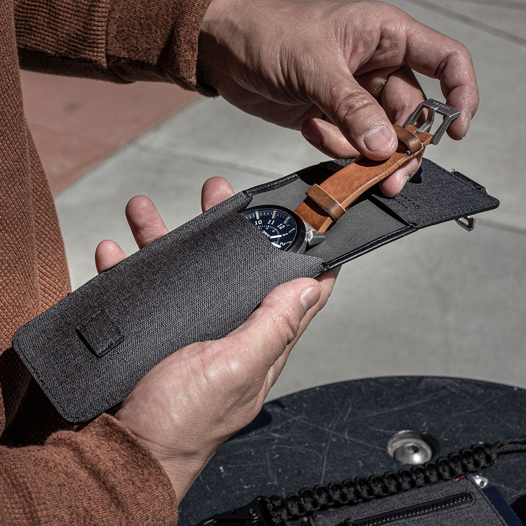 Whether you are traveling and need to organize your EDC, transporting a nice watch, holstering a choice blade, this sleek and lightweight product is designed just for you. Slim down your pockets, organize & protect your gear and allow yourself to transport more. Carry your favorite watches, pens, knives, jewelry, tools, tech and other small EDC gear.