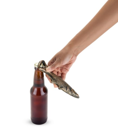 Fashioned from heavy cast iron and refined with a weathered bronze finish, our fish bottle opener is a formidable force against beer caps and bottles alike. Grab this gill-bearing guppy for on the go tomfoolery or at-home festivities. Because really, what better way to get sloshed?