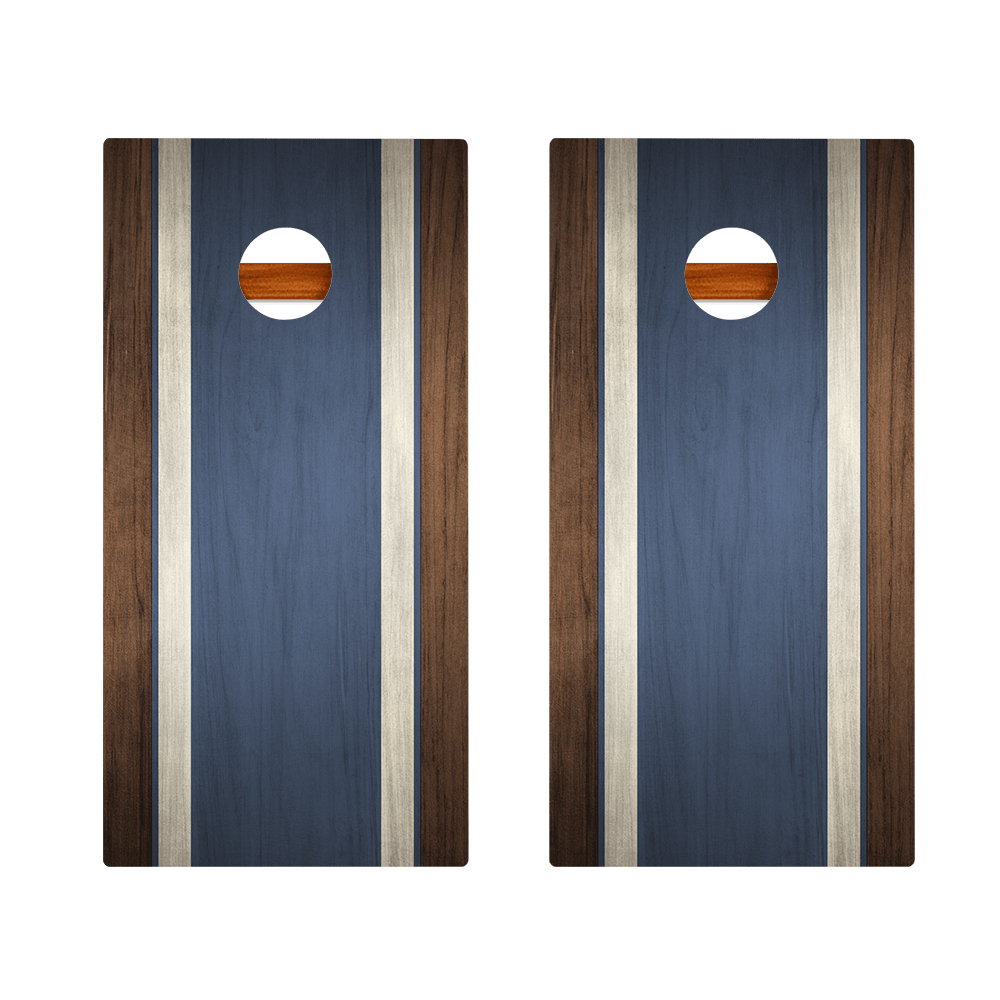 Classic Stripes Dark Wood Blue Silver Series Cornhole Boards