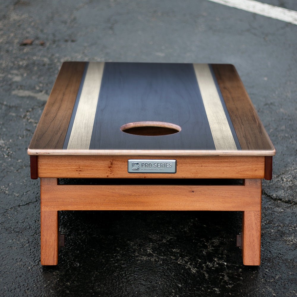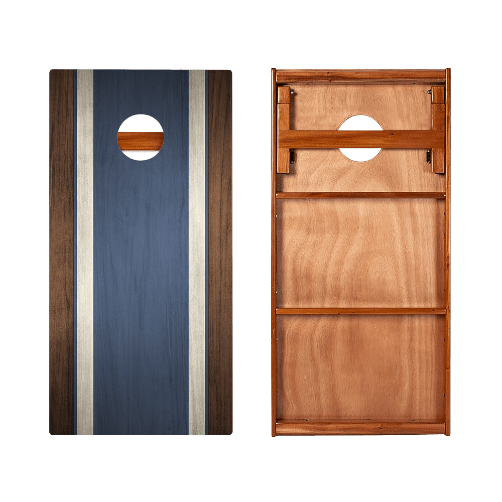 Classic Stripes Dark Wood Blue Silver Series Cornhole Boards with Double Brace – 2x4 Regulation Size