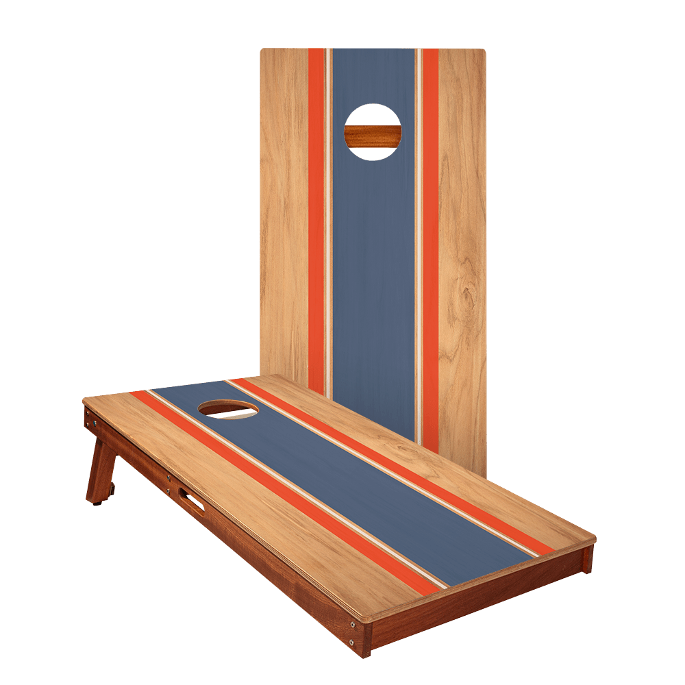 Classic Stripes Natural Wood Blue and Red Silver Series Cornhole Boards