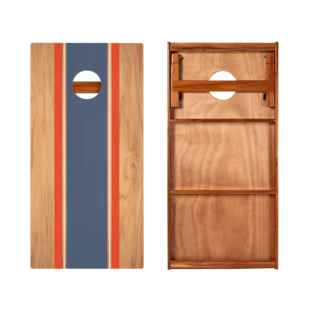 For players who want top-tier performance without the full Gold Series price tag. This high-quality ACA Classic Stripes Natural Wood Blue and Red Silver Series Cornhole Board delivers where it matters most. Packed with many premium features—like a durable mahogany frame and a 5/8-inch Grade A plywood top—it offers a solid, reliable playing surface. Double cross bracing enhances stability, while locking collapsible legs and rubber grip feet ensure a steady game on any surface. This board isn’t just built to play, it’s built to impress. Bring a pop of color to your game with the Classic Stripes Natural Wood Blue and Red design, combining traditional wood finishes with eye-catching stripes for a timeless, yet fresh style.