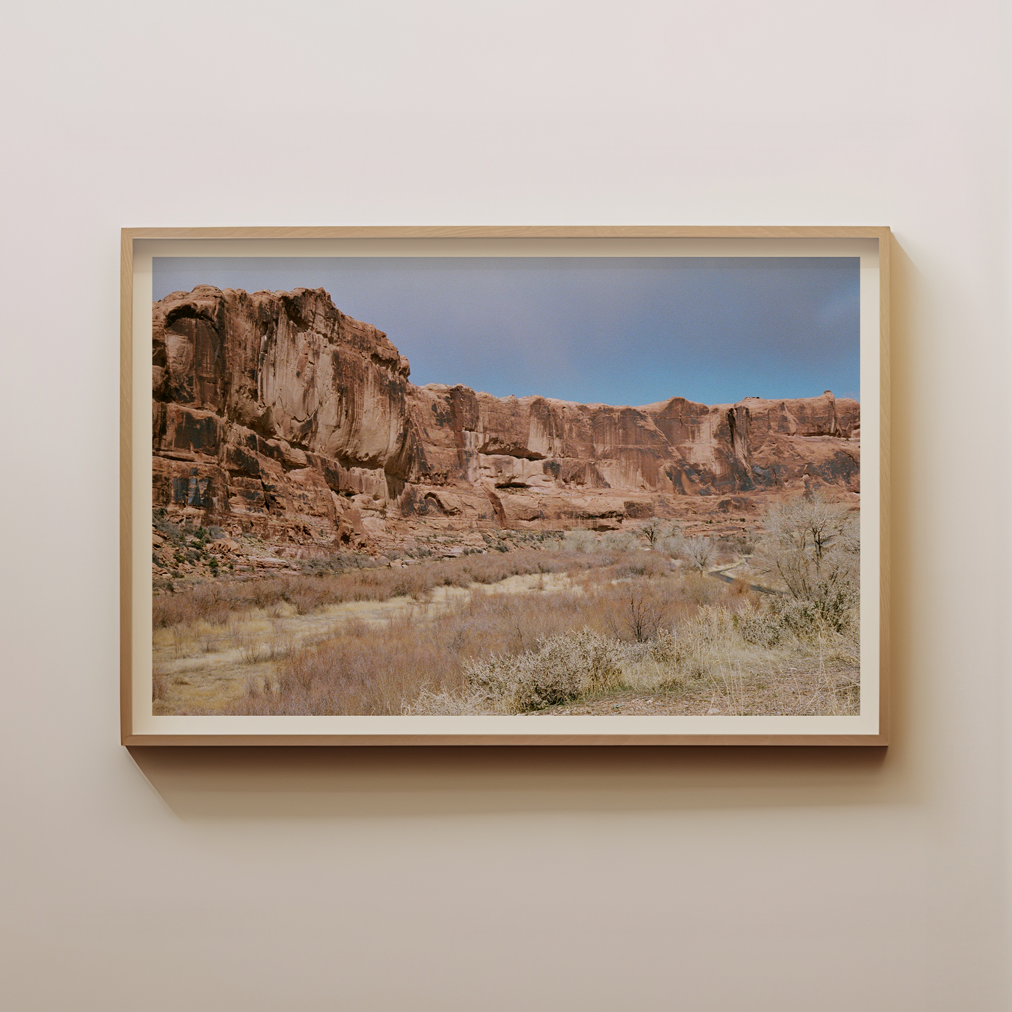 Warm red cliffs under a blue desert sky—this horizontal poster brings rugged Southwest vibes to your space. Western art