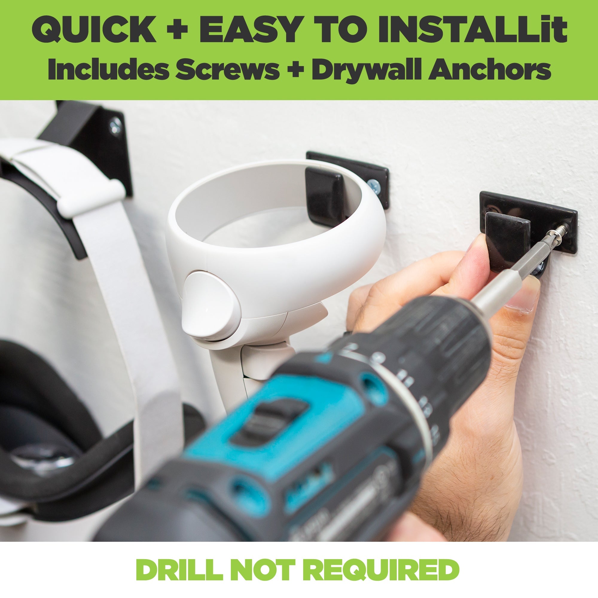 Most mounts install in minutes. You don't need a drill, but it does make things faster. We provide drywall screws + anchors so all you need is a Phillips head screwdriver!- Determine Mount Location