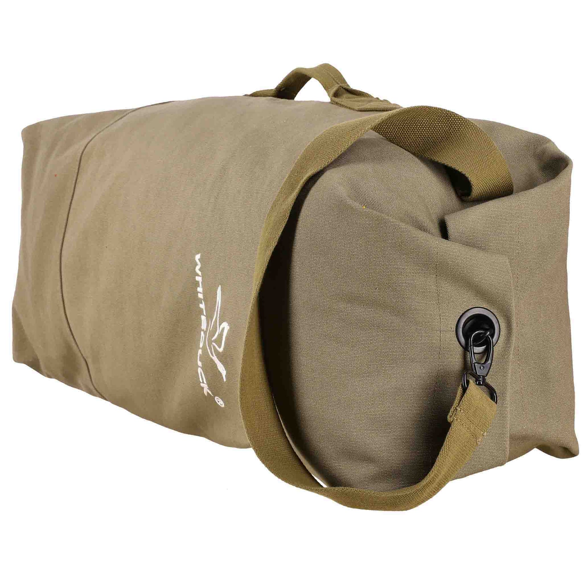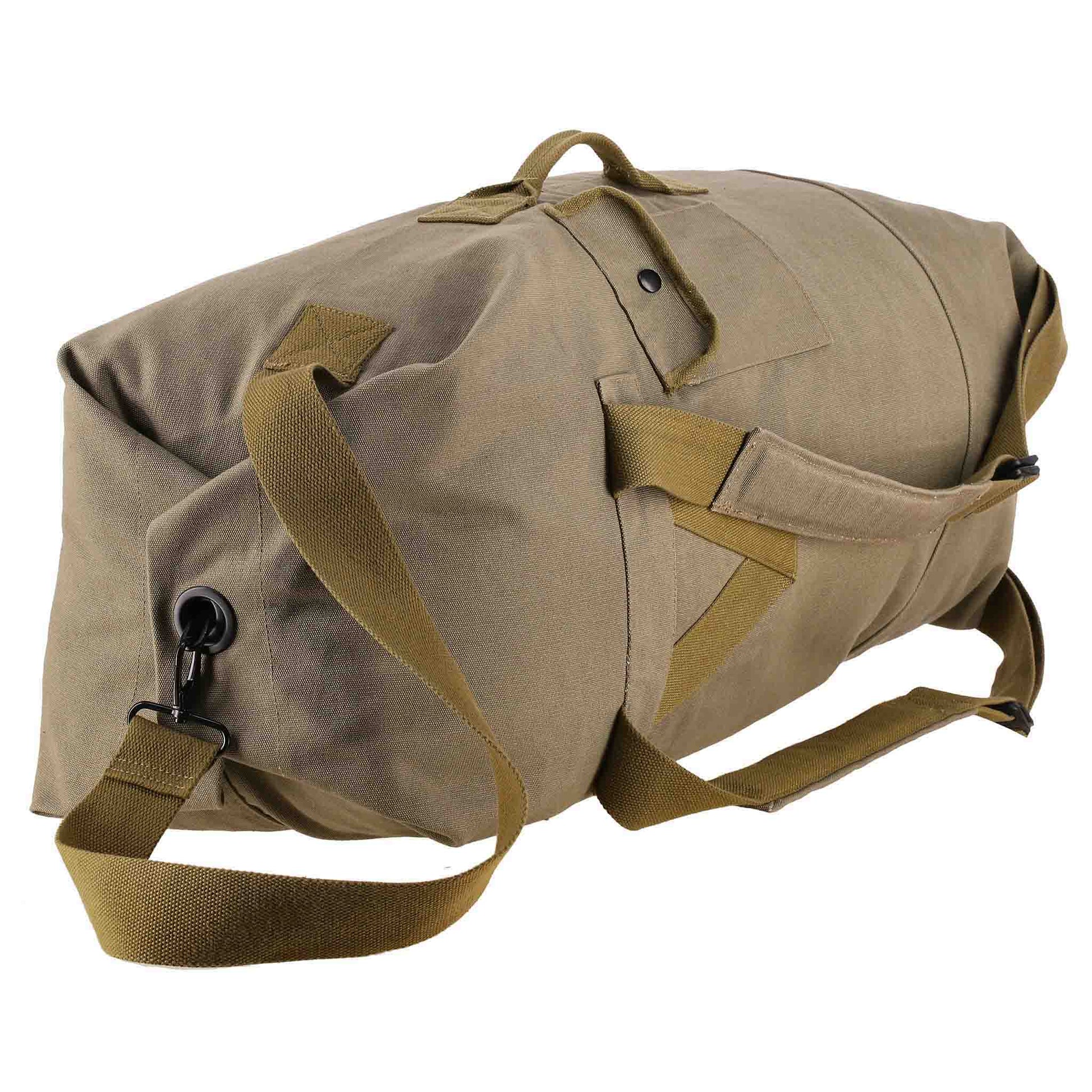 The Hoplite G.I. bags are ultra-durable canvas bags built to last years. The large opening makes it easy to pack bulky and oversized items and the snap hook makes for a super secure fastening system.