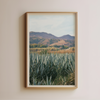 A lush field of agave stretches toward the land of Oaxaca, Mexico—earthy tones and natural textures make this one a peaceful escape on your wall. Sip on your mezcal and enjoy