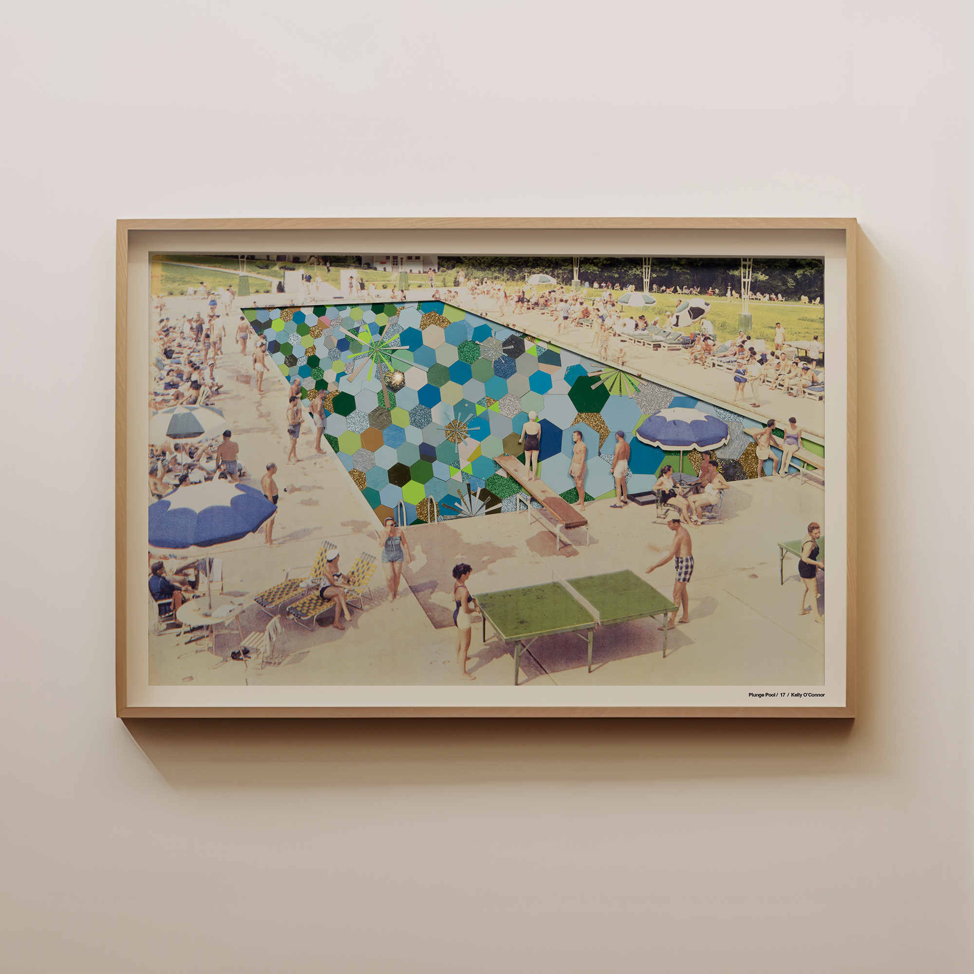 Dive into retro summer vibes with this vibrant poolside print. A colorful mix of vintage photography and modern design and a ping pong table for the perfect vibes