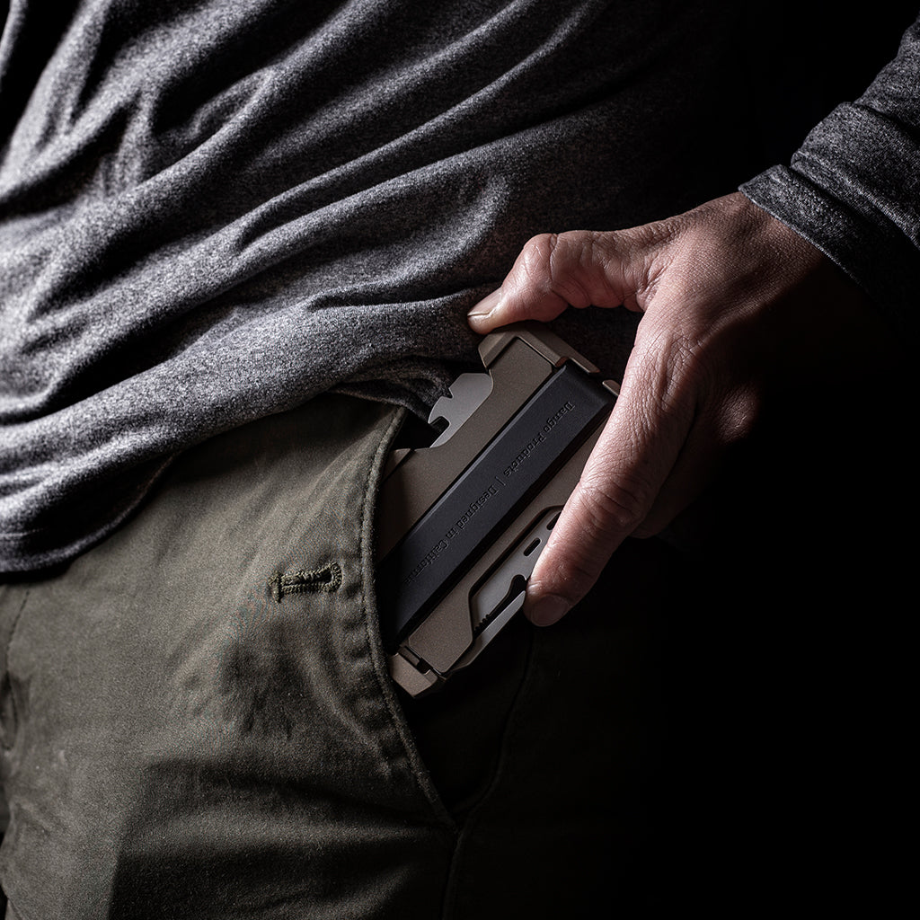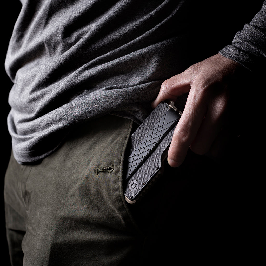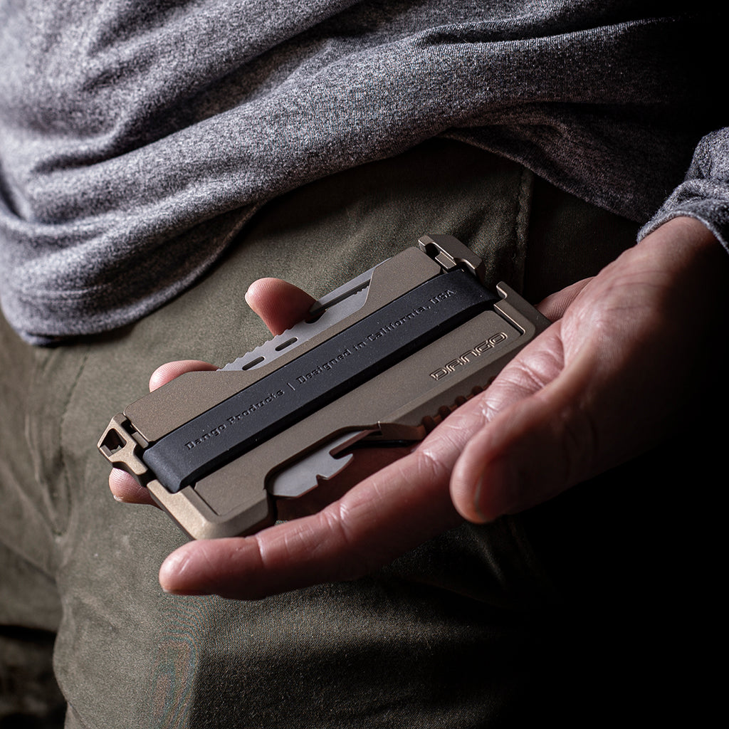 The T01 Tactical™ Wallet Spec-Ops edition was built to be rugged & tactical yet very sophisticated. The T01 Spec-Ops encompasses a fine mixture of metal & soft goods to hold your everyday necessities. The T01 Spec-Ops is the first non-leather wallet from Dango Products. The DTEX exterior is a resilient, flexible, water resistant, textured and durable material designed to withstand rough usage. As in all of our T01 Tactical™ Wallets, the T01 Spec-Ops also comes with the MT02 Multi-Tool. There are over 14 functions built in. The Dango MT02 Multi-Tool slides into the cavity where the cards sit. When engaged, the multi-tool is nested securely onto the safety locks on the wallet chassis creating leverage & grip. Functions of the multi-tool include: hex wrenches, paracord tensioner, cutter, nail pryer, serrated/sharpened edges, a ruler and even a phone stand. T01 Tactical™ Wallets are packed with functionality and packaged into one compact Dango Wallet.
