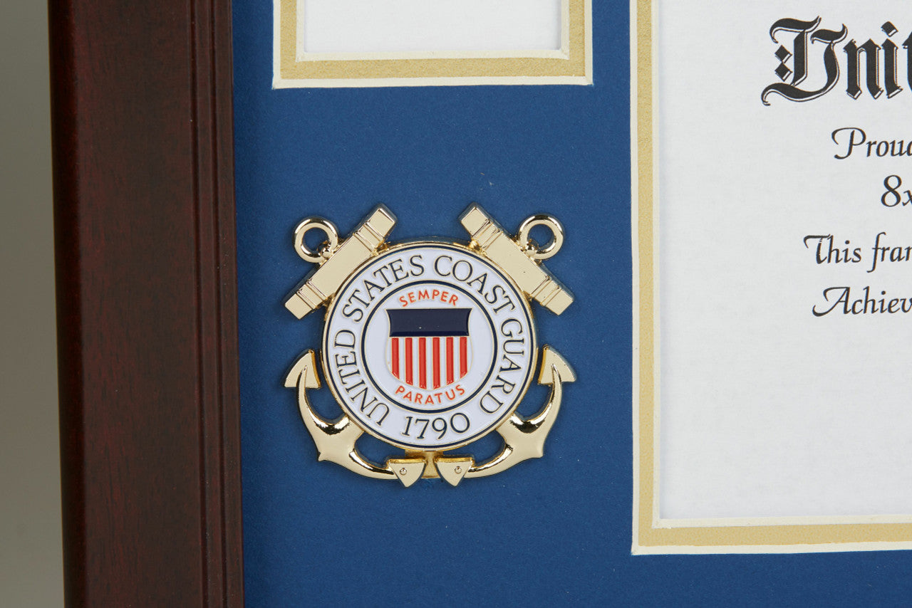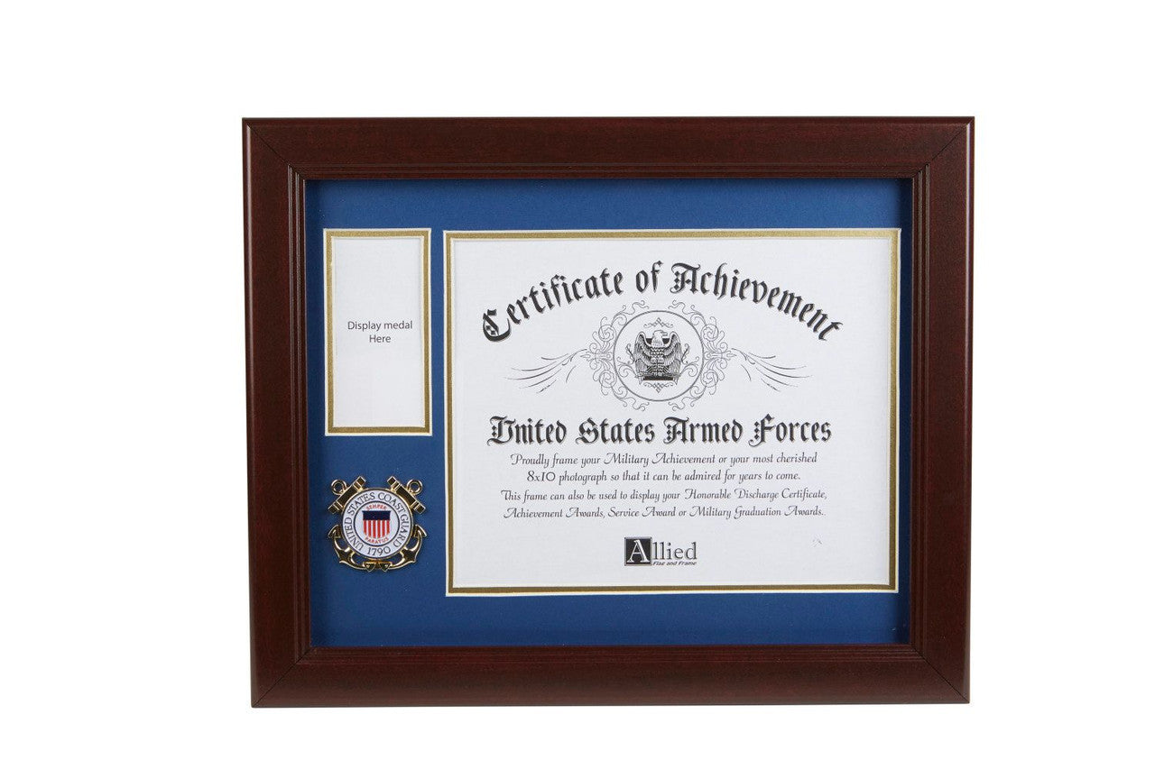 U.S. Coast Guard Medallion Certificate and Medal Frame is designed to hold a single 8-Inch by 10-Inch document, certificate, award, diploma or picture.