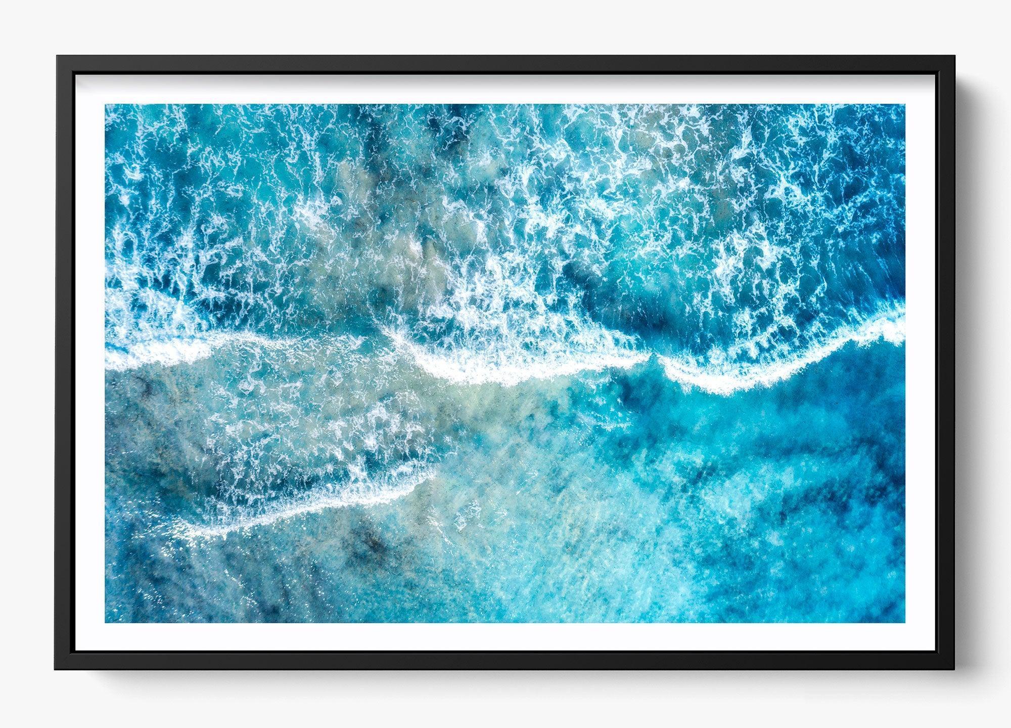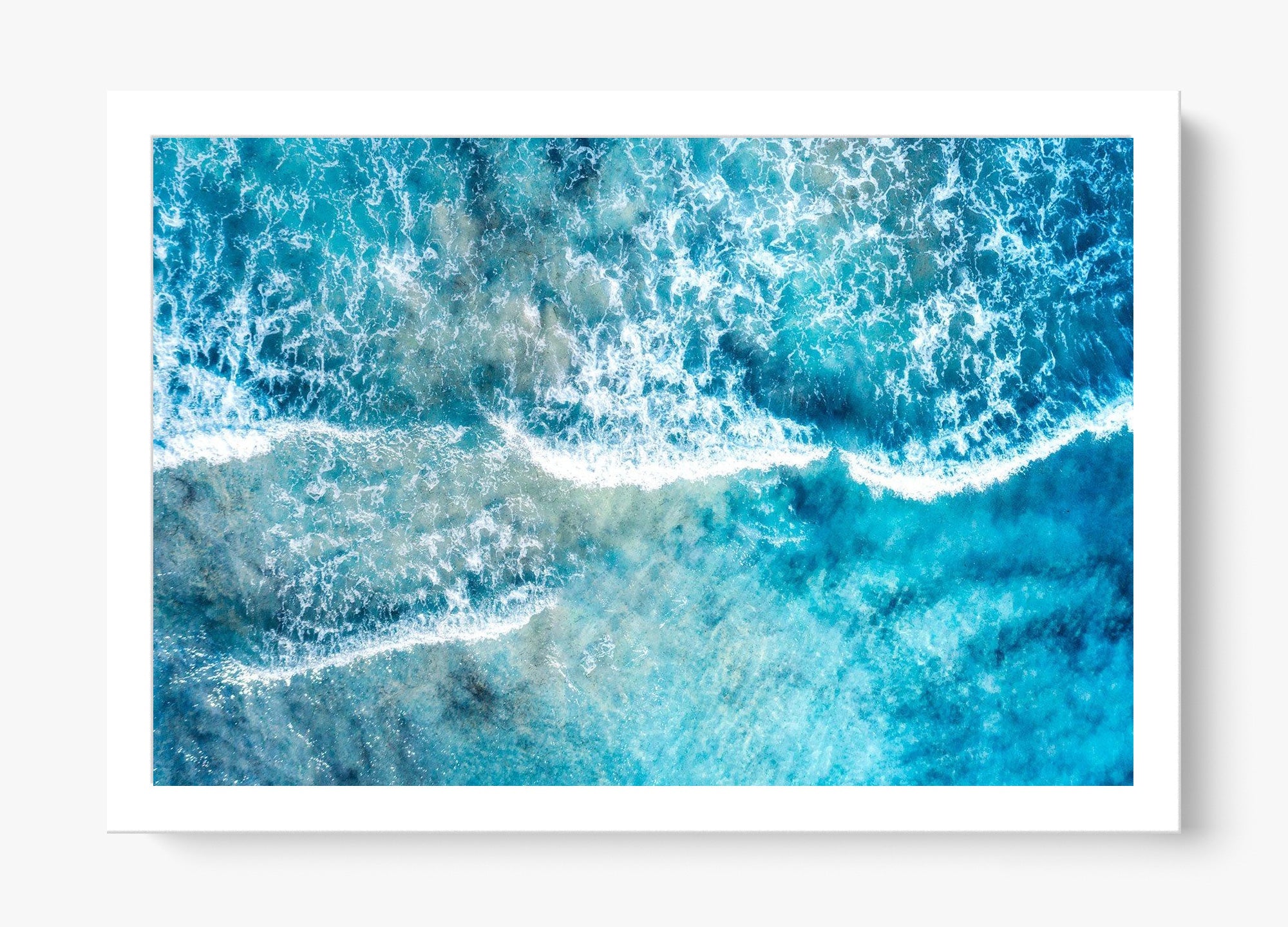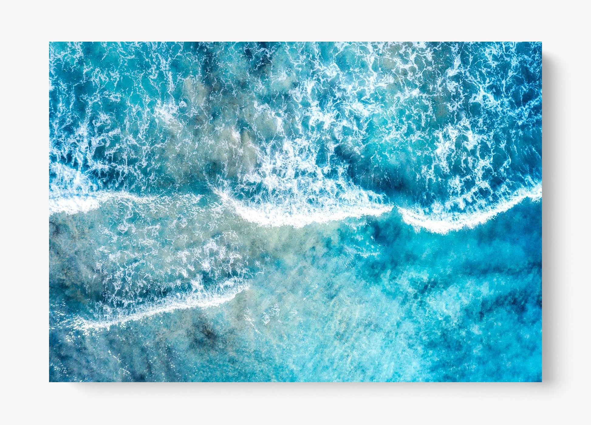 Gentle waves wash over the shallows, blending sea and shoreline into layers of drifting blue and white. Subtle and expansive, this piece invites stillness and reflection.