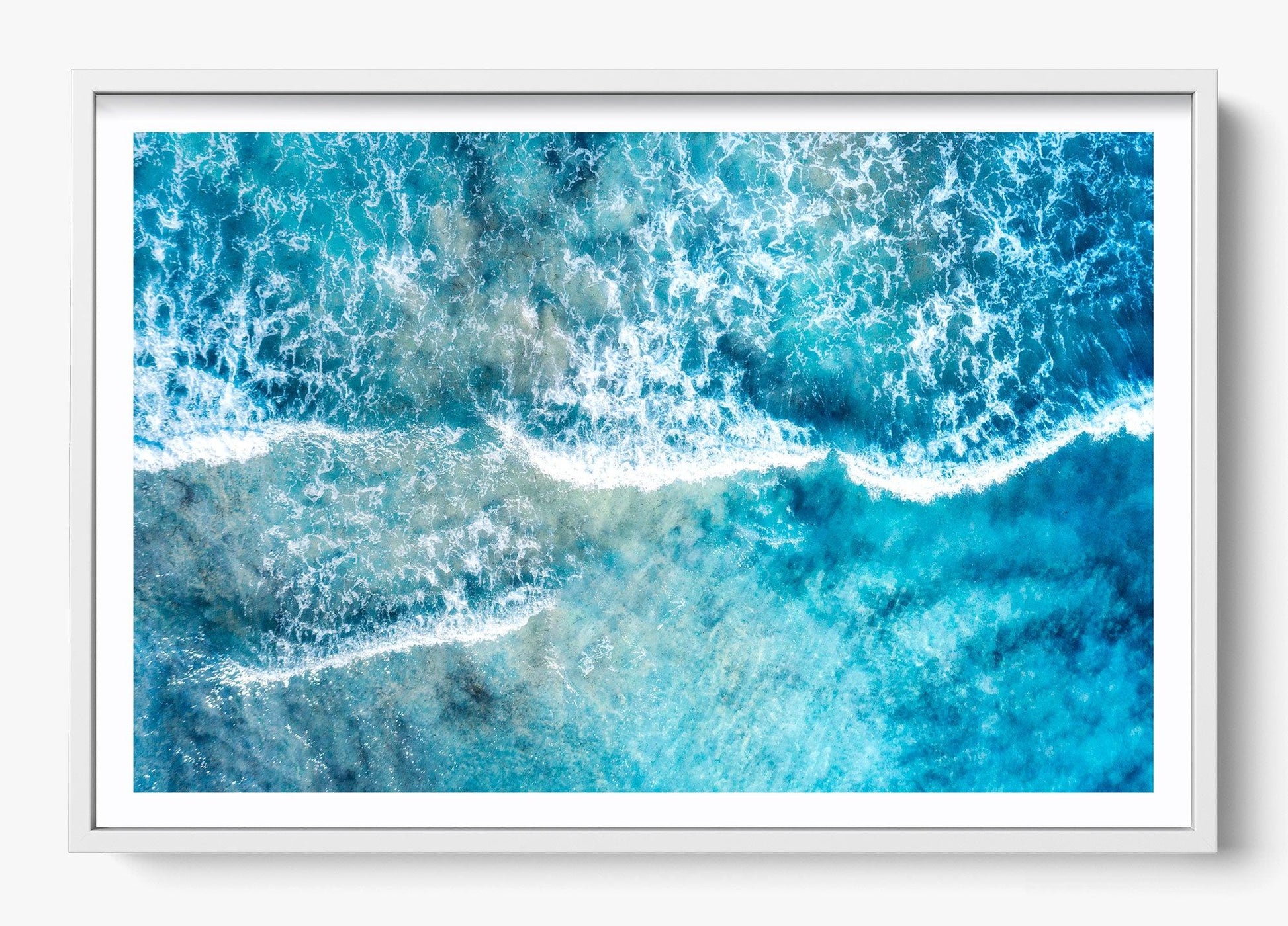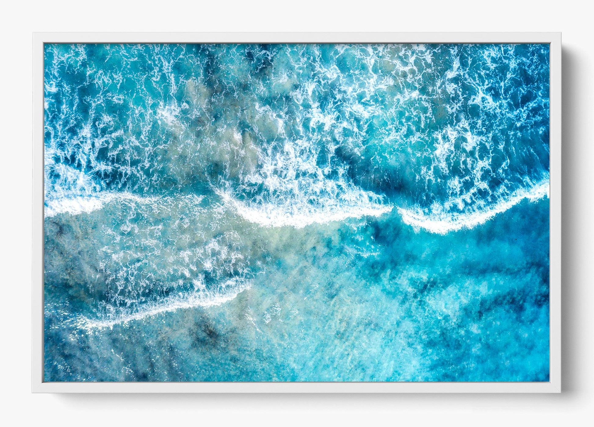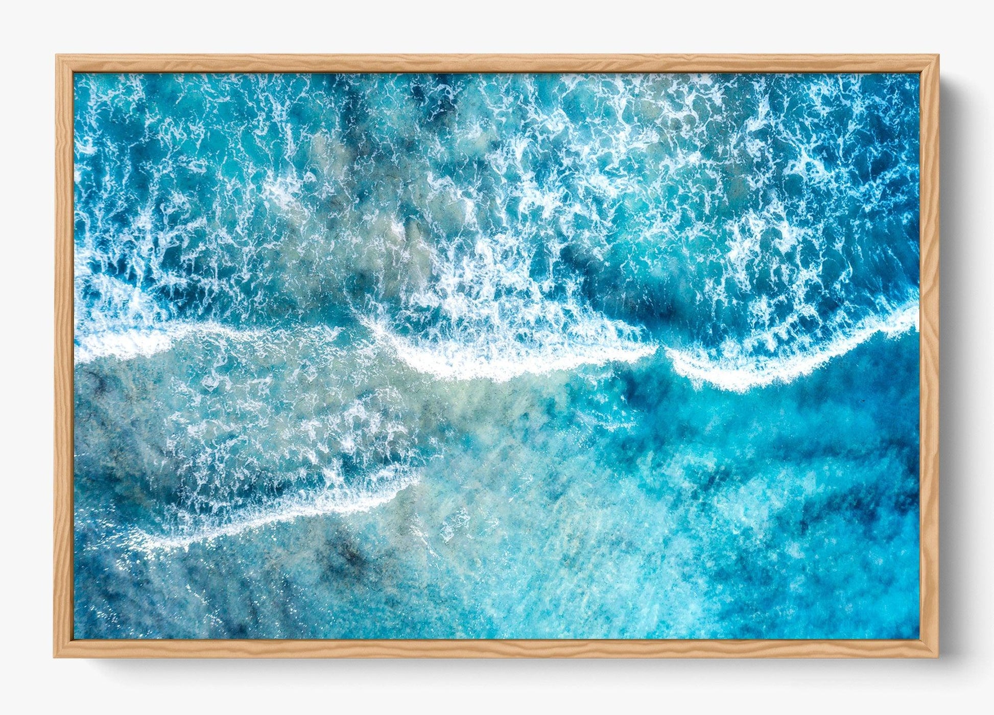 Gentle waves wash over the shallows, blending sea and shoreline into layers of drifting blue and white. Subtle and expansive, this piece invites stillness and reflection.
